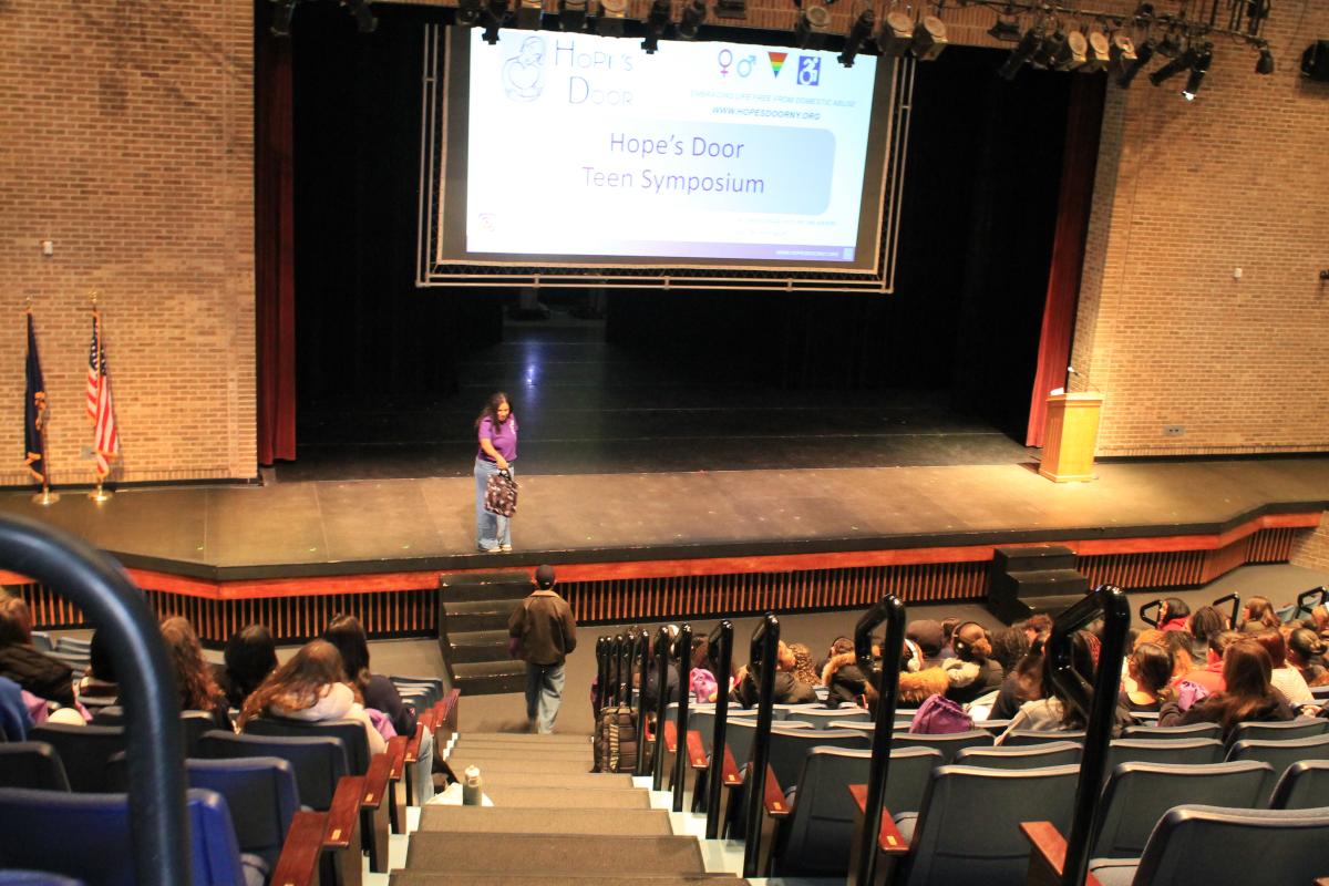 On February 6th, Hope’s Door hosted the annual Teen Symposium at the Westchester Community College Campus in Valhalla, NY in honor of Teen Dating Violence Awareness Month. We invited schools all throughout Westchester County! Students participated in educational workshops, interactive theater, and won some unforgettable raffle prizes.